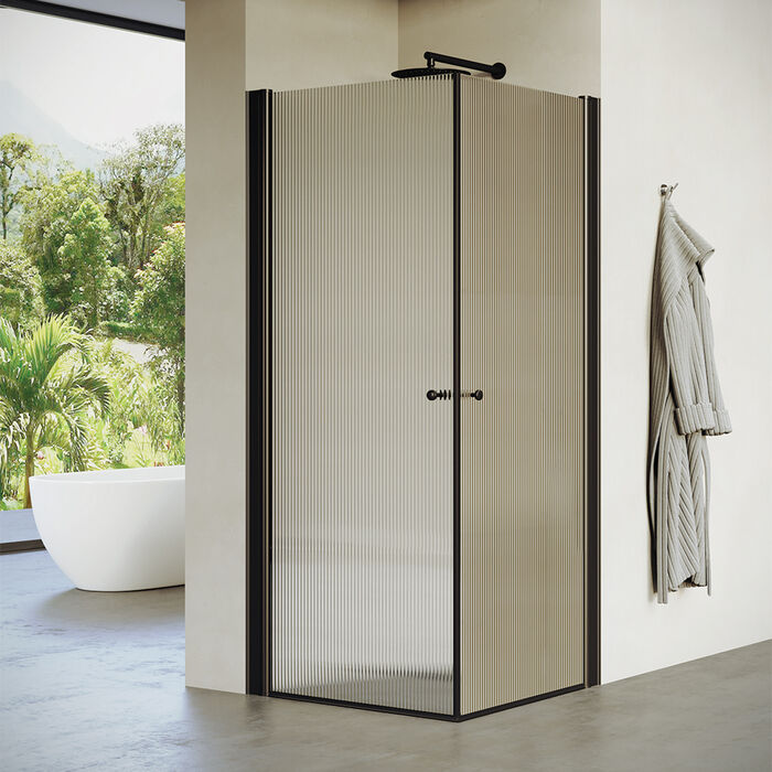 מקלחון פינתי שתי כנפיים ,פרופיל שחור,זכוכית גלינה מידה 66-92 סיימ